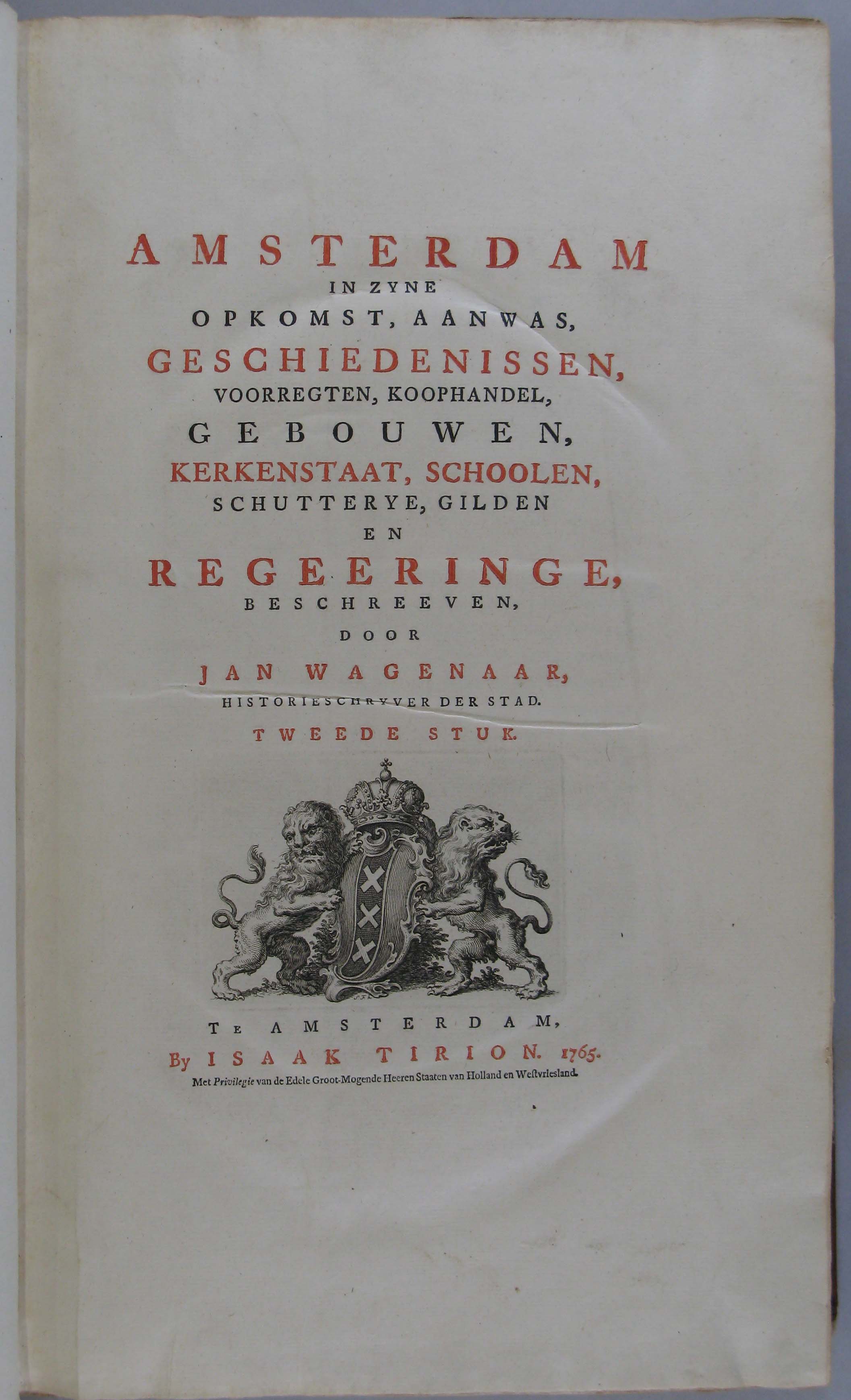 - Amsterdam in zyne opkomst, aanwas, geschiedenissen [...] : tweede stuk. Amsterdam, Isaak Tirion, 1765, 1765