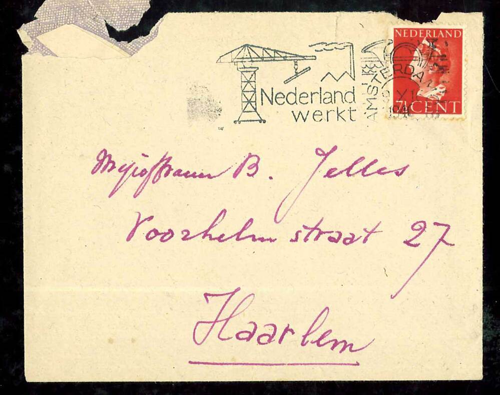 - Envelop voor brief aan Baukje Jelles, 1946