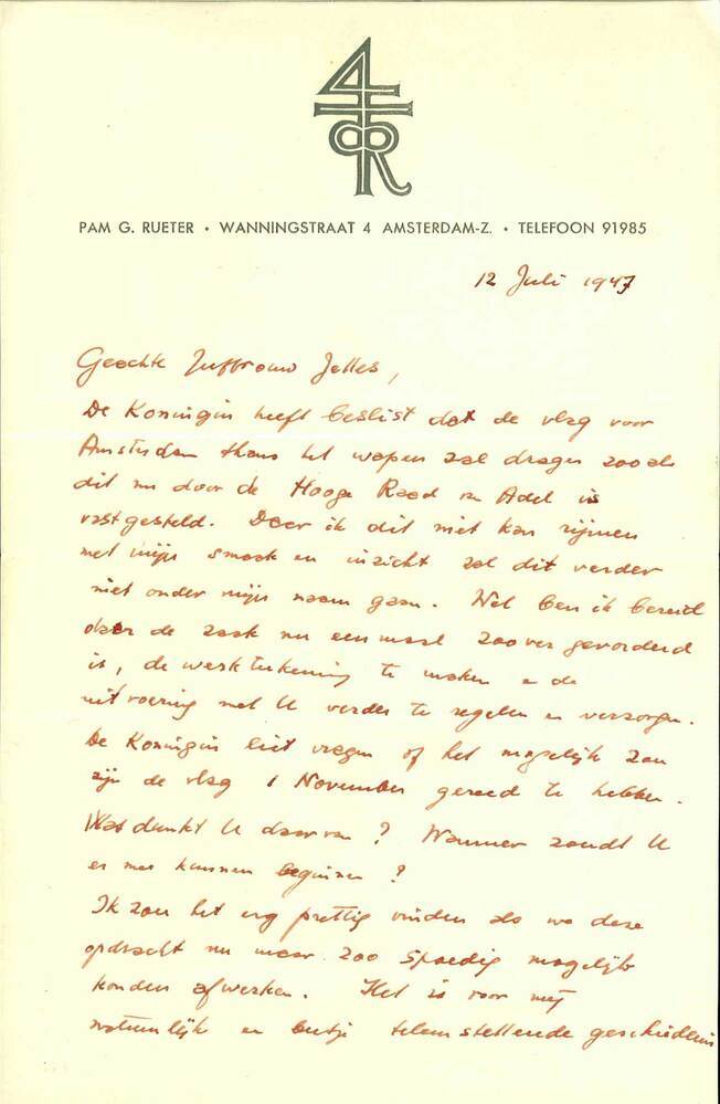 - Brief aan Baukje Jelles over deviesvlag stad Amsterdam, 1947
