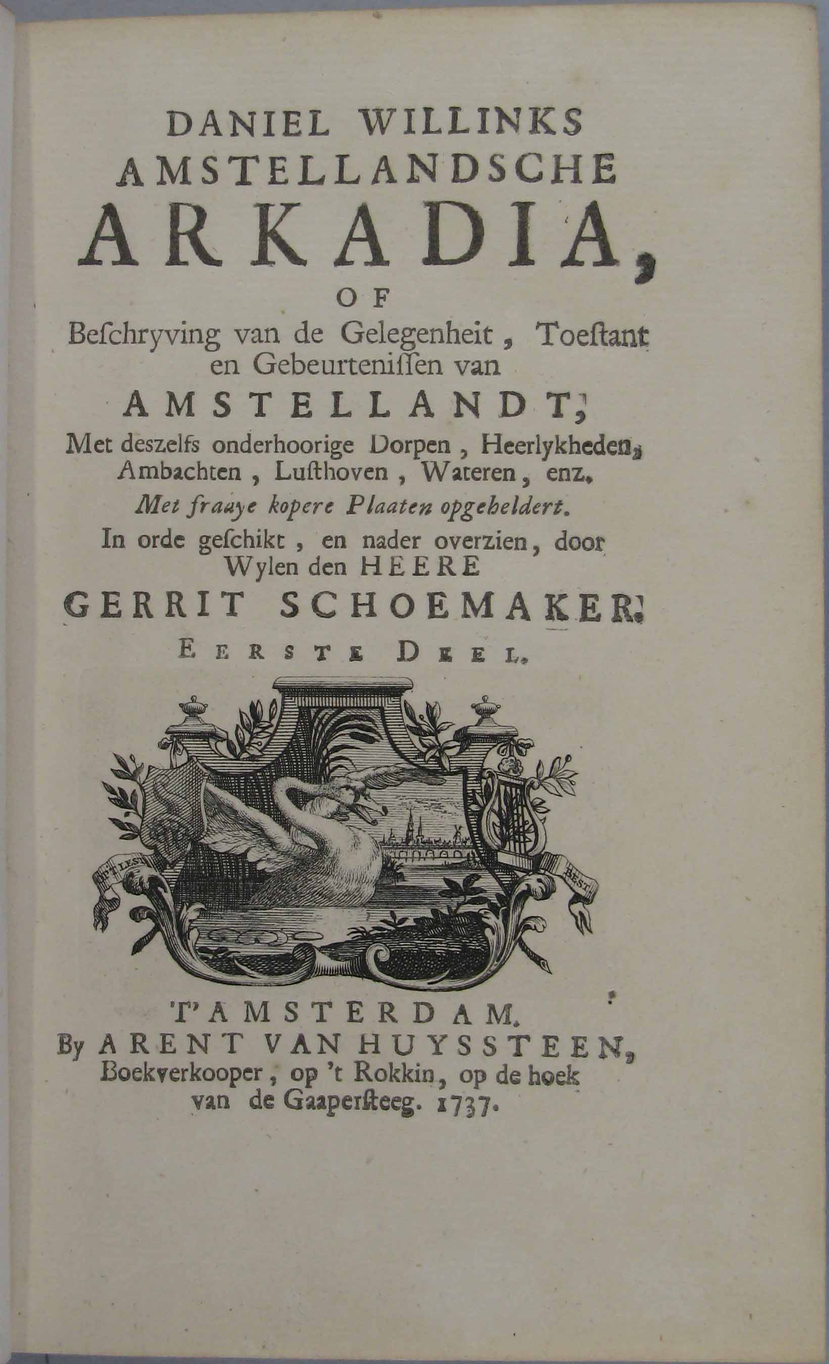 - Daniel Willinks Amstellandsche arkadia, of beschrijving van de gelegenheit, toestant en gebeurtenissen van Amstellandt etc. In orde geschikt...door Gerrit Schoemaker.
