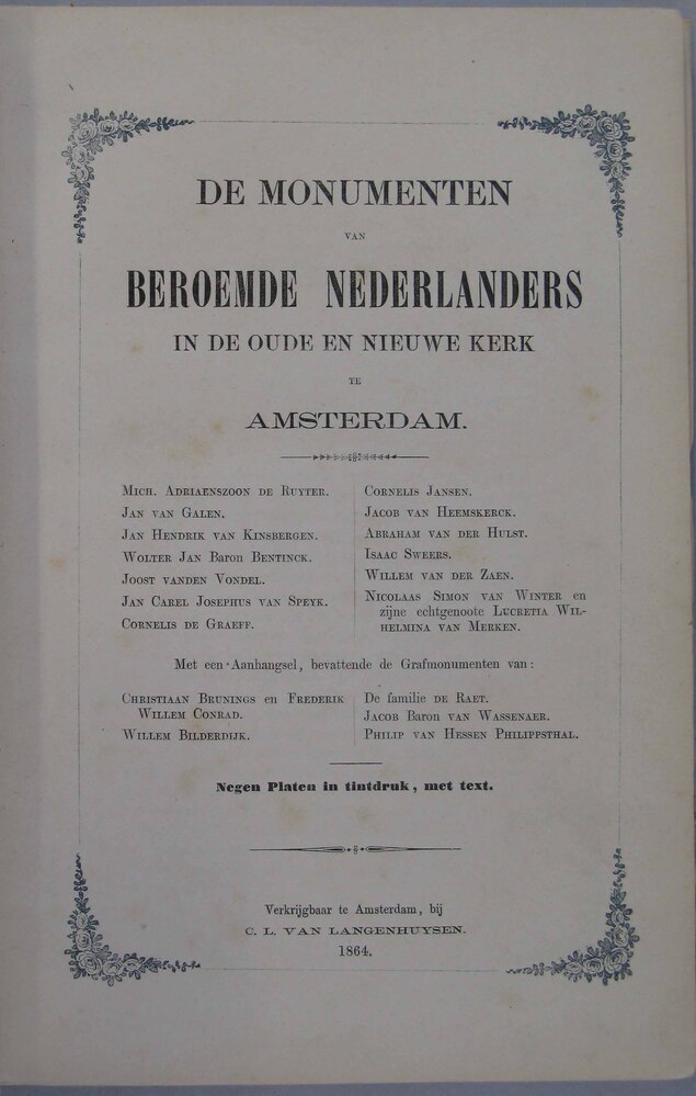 - monumenten van beroemde Nederlanders in de Oude en Nieuwe kerk te Amsterdam.