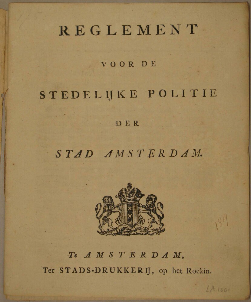 - Reglement voor de stedelijke politie der stad Amsterdam. - Amsterdam, Stadsdrukkerij, [1819], 1819