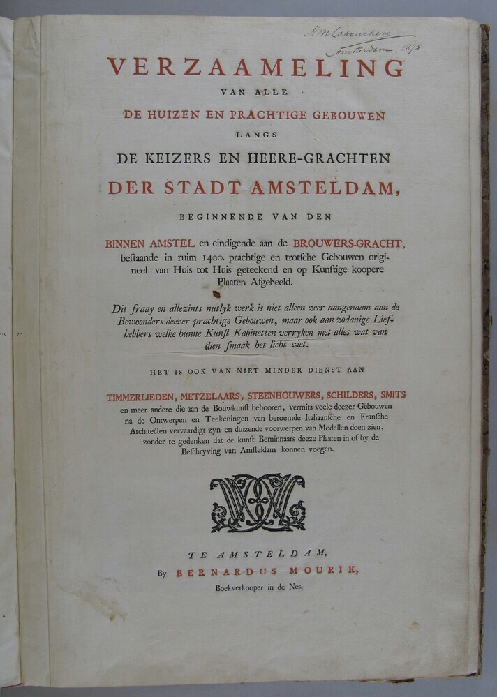 - Verzaameling van alle de huizen en prachtige gebouwen langs de Keizers en Heere-grachten der stadt Amsteldam, beginnende van den Binnen Amstel en eindigende aan de Brouwers-gracht, 1750