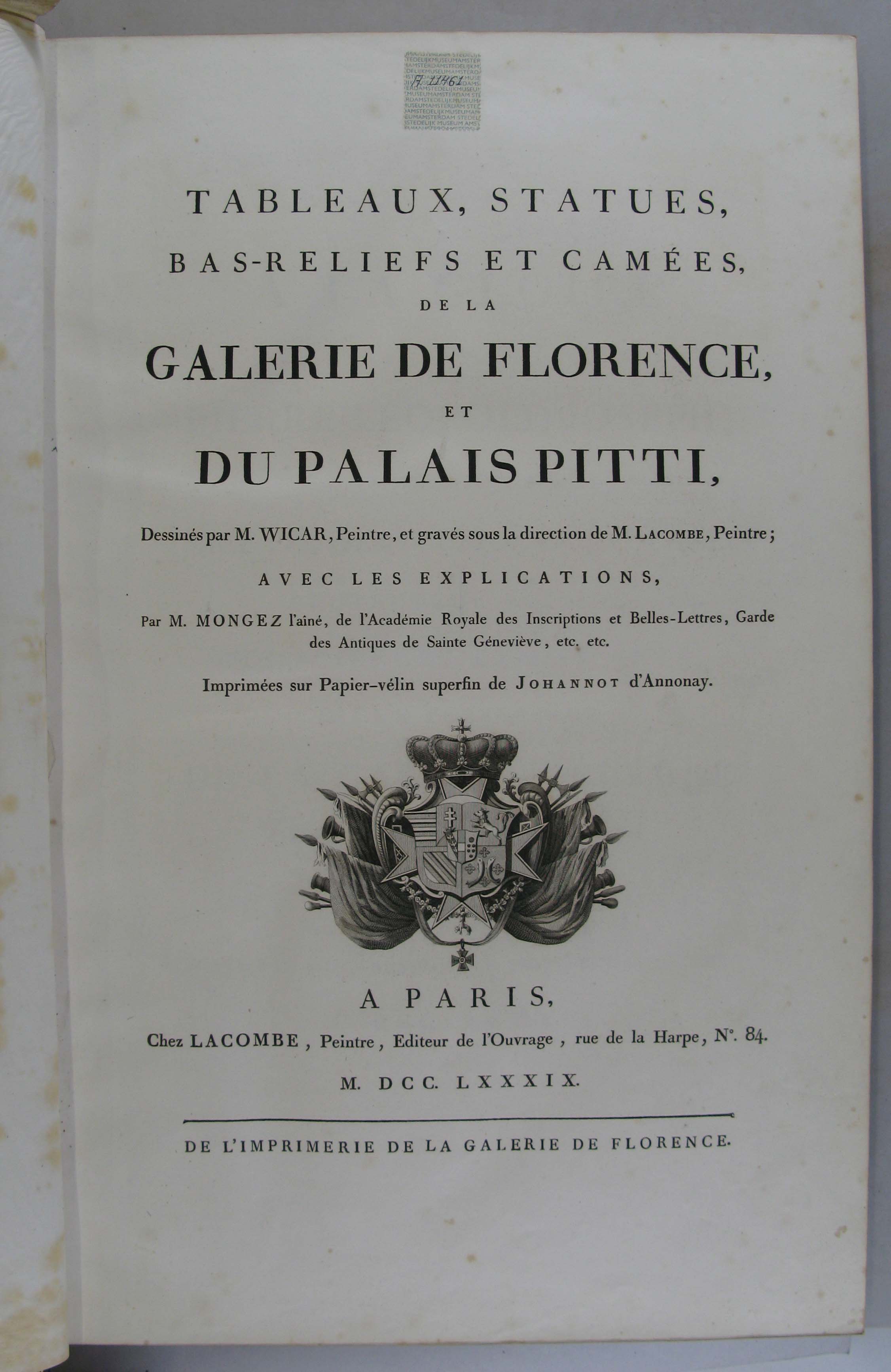 - Tableaux, statues, bas-reliefs et camées de la galerie de Florence et du palais Pitti, 1, 1789 - 1802