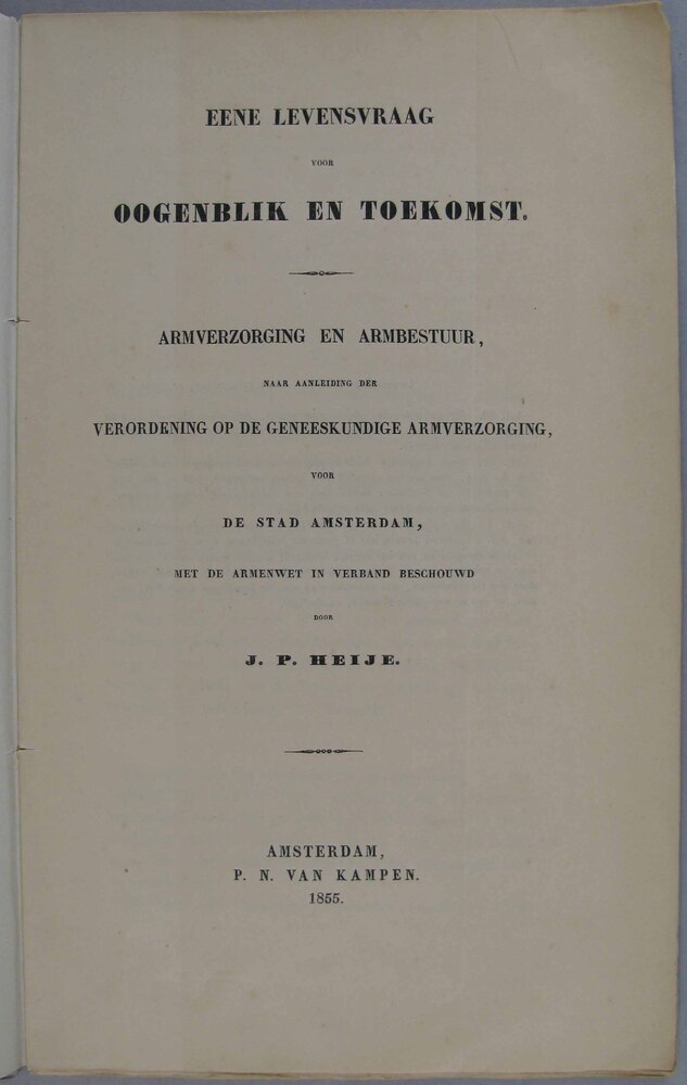 - Eene levensvraag voor oogenblik en toekomst : armverzorging en armbestuur, naar aanleiding der verordening op de geneeskundige armverzorging, voor de stad Amsterdam, met de armenwet in verband beschouwd