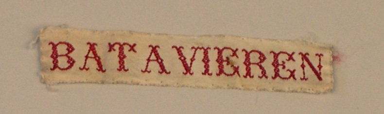 wit lint met daarop geborduurd in rode letters "Batavieren"- Trefwoorden