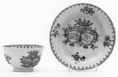 - Kop en schotel van 11-delig theeservies, 1800 - 1849