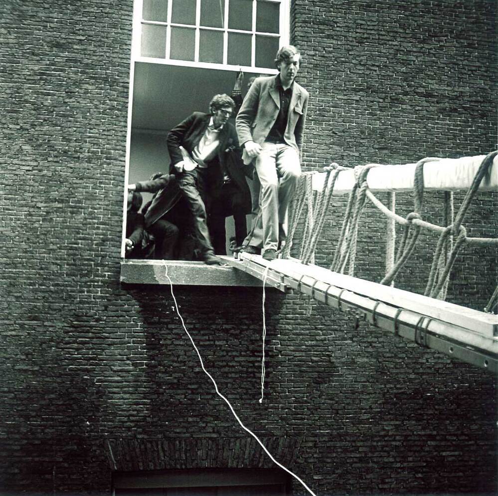 - Maagdenhuisbezetting: Paul Verhey op brug tussen Maagdenhuis en Lutherse Kerk, mei 1969, 1969