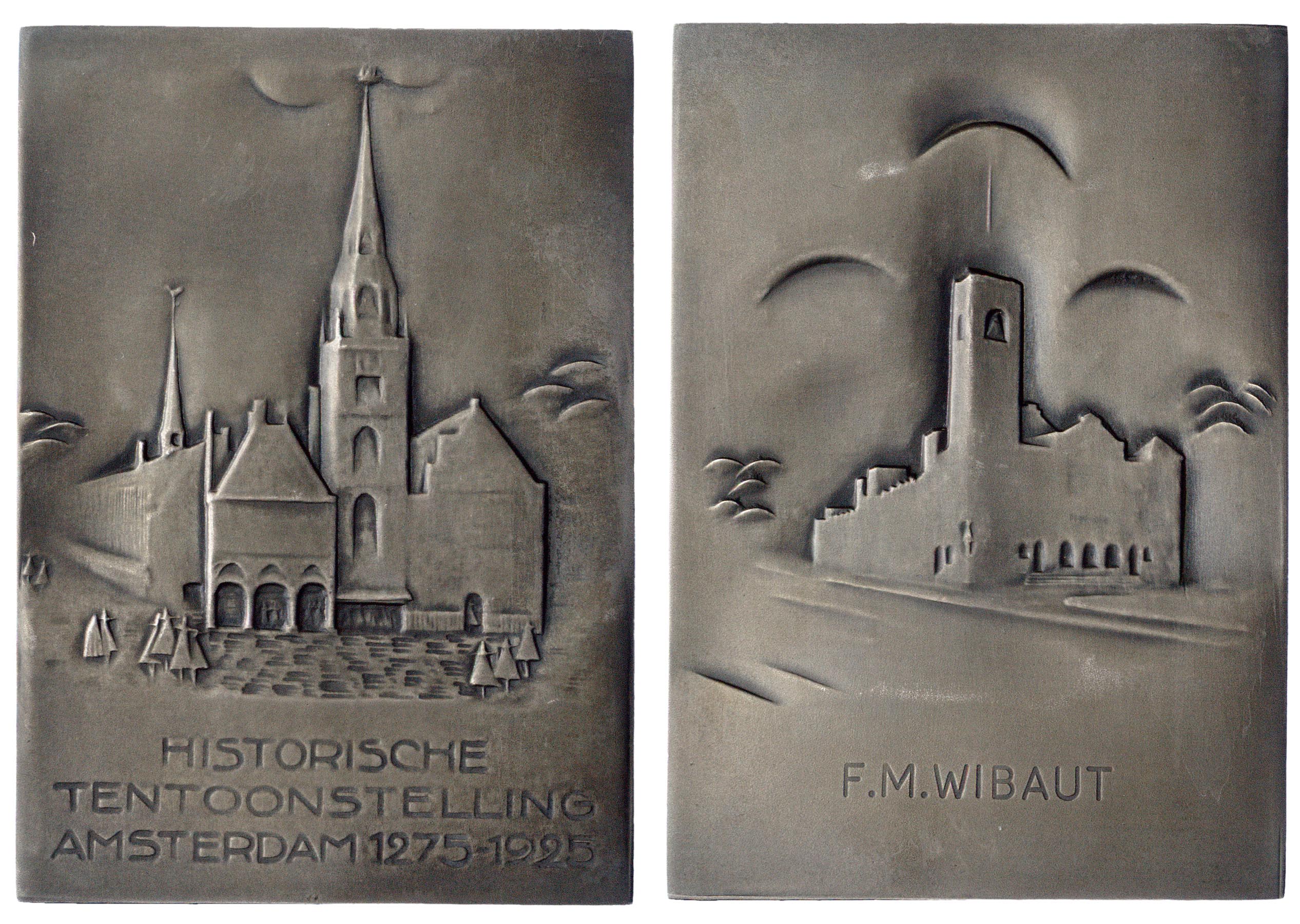 Historische Tentoonstelling Amsterdam 1275-1925, t.n.v. dr.F.M. Wibaut, 1915 - 1925 zilver hoogte: 7.1 cm; breedte: 5.0 cm; diepte: 0.4 cm; gewicht: 105.51 gr; opschrift voorzijde: HISTORISCHE / TENTOONSTELLING / AMSTERDAM 1275-1925