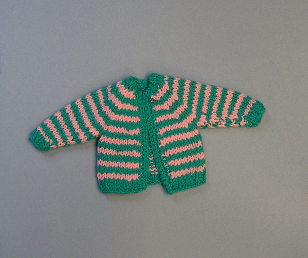 Groen en roze gestreept vestje, van wol.- Trefwoorden