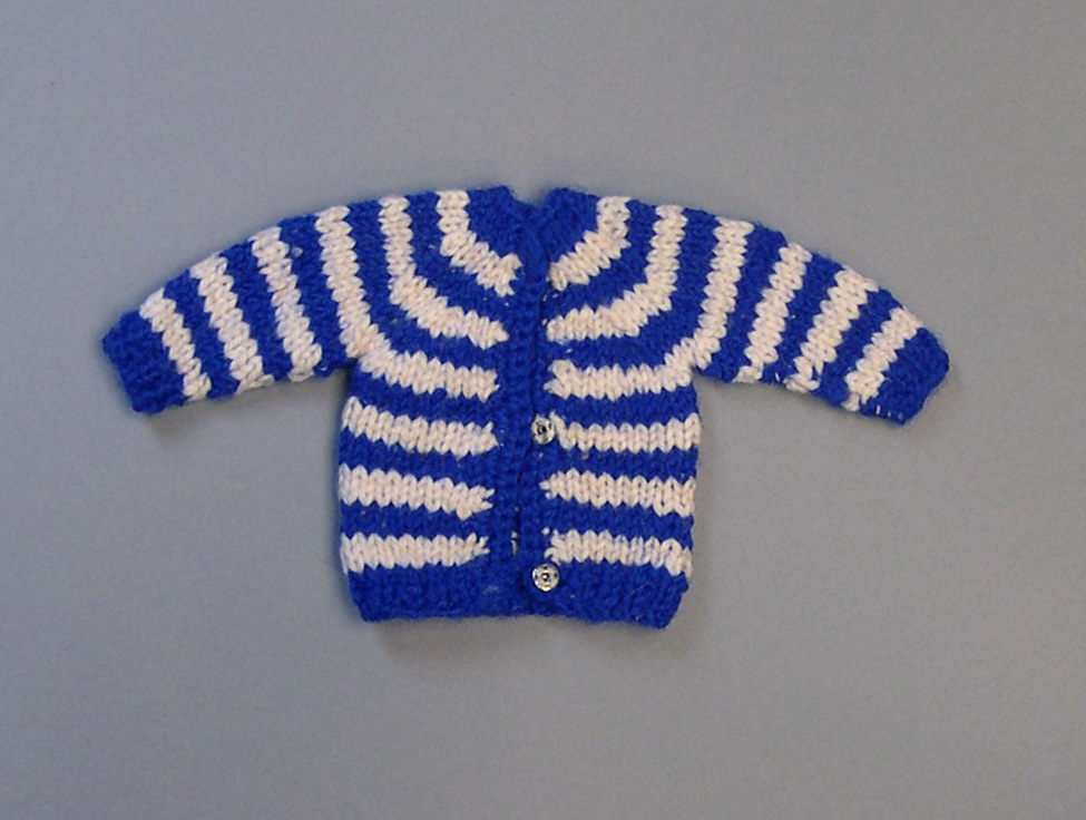 Blauw en wit gestreept vestje, van wol.- Trefwoorden