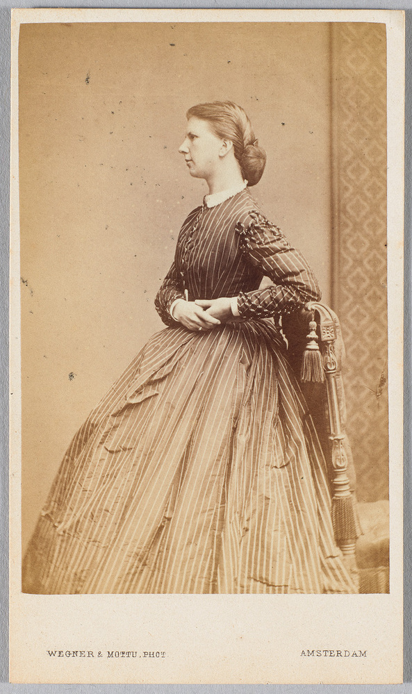 De jonge vrouw stelt de in het Franse Ingouville geboren Mathilde Kleinmann (1836-1921) voor. Tot 1865 was zij de gezelschapsdame van Louisa Willet-Holthuysen en woonde bij haar werkgeefster in huis aan de Herengracht 605. In dat jaar trouwde zij met de linguïst jonkheer Willem Jan van Eys. Na hun huwelijk verhuisden Mathilde en haar echtgenoot naar het buitenland. Eerst ging het paar in Londen wonen, later in San Remo in Italië, zonder het contact met Amsterdam te verbreken. Bij haar overlijden in 1895 liet Louisa haar voormalige dame de compagnie de lieve som na van drieduizend gulden. In haar kleine