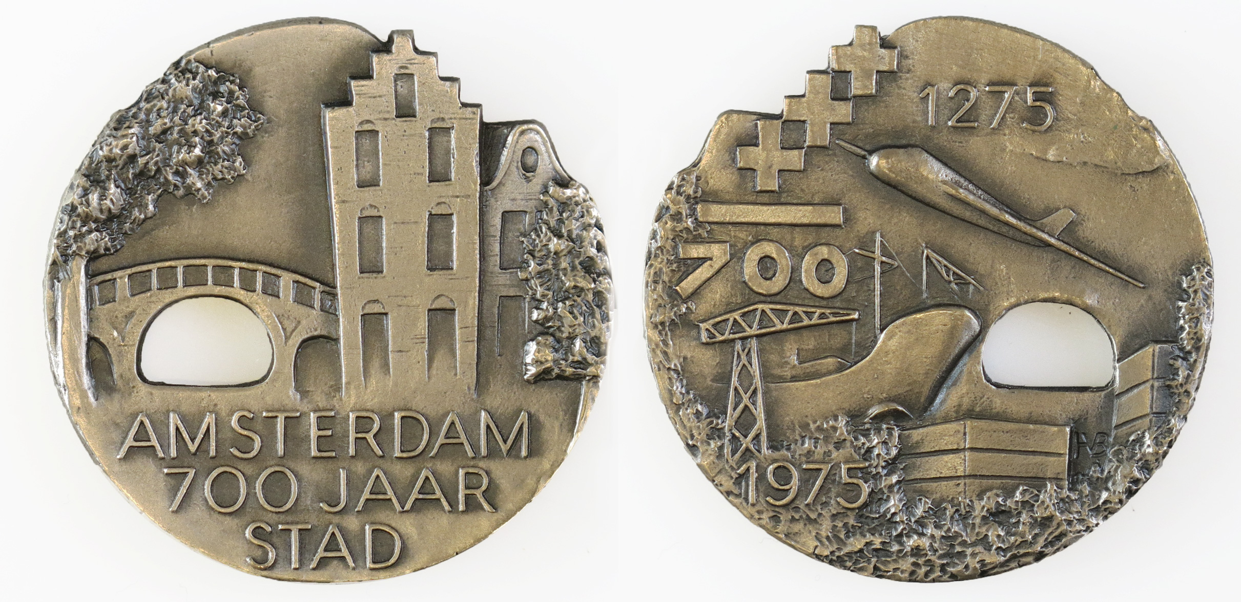 Dit object herinnert aan de grootse viering van Amsterdam 700 in 1975: een fraaie herdenkingspenning die destijds door het gemeentebestuur werd uitgereikt aan personen, die zich verdienstelijk hadden gemaakt bij het organiseren van de festiviteiten. ( Frans Oehlen)