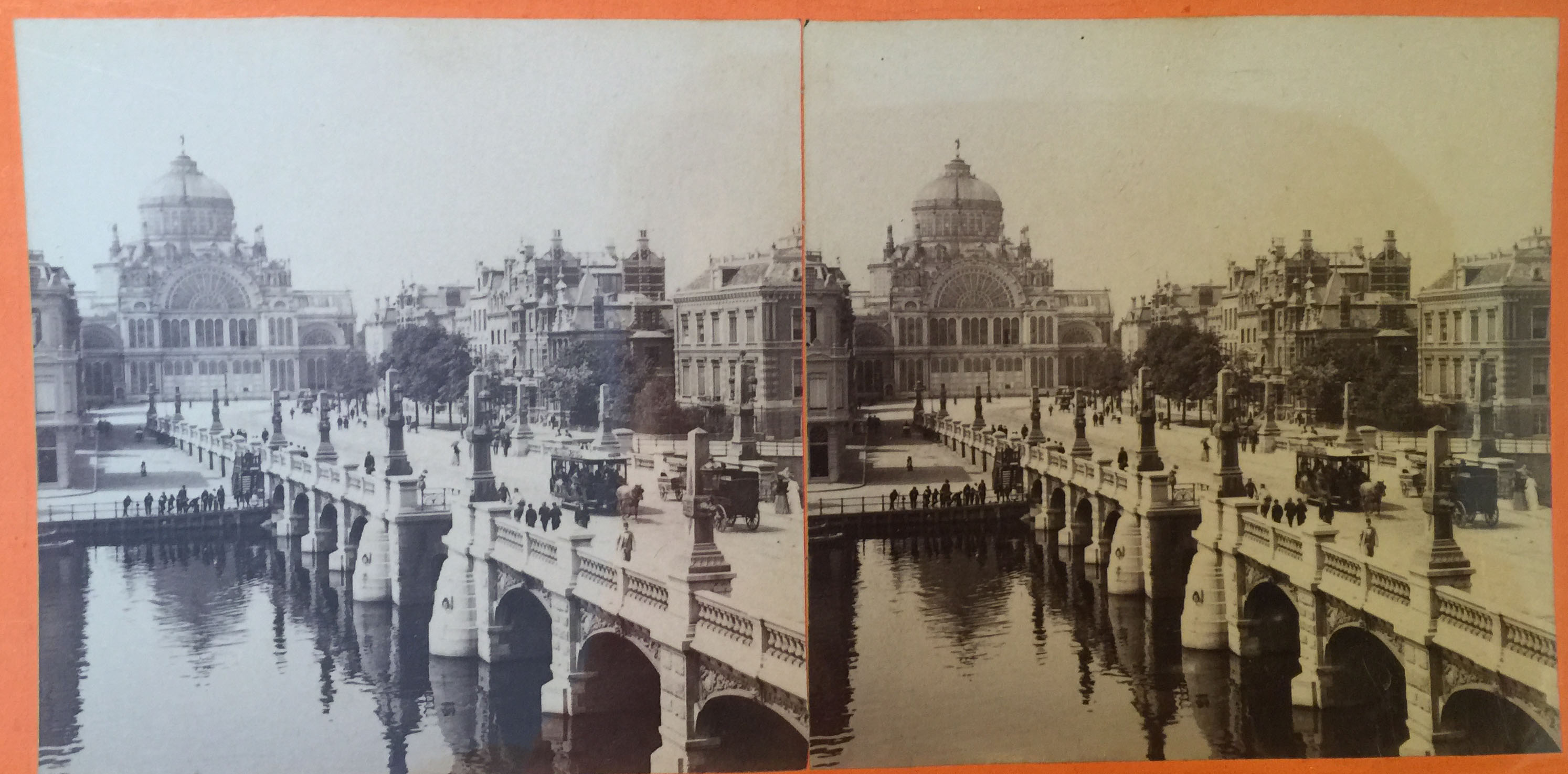 - Stereokaart voorstellende het Paleis voor Volksvlijt met de Sarphatibrug, 1900 - 1925