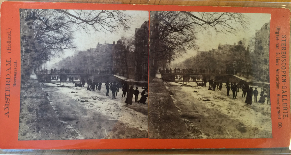 opschrift voorzijde rechts: STEREOSCOPEN-GALLERIE Uitgave van S. Herz Amsterdam, Heerengracht 80. - schenking 1982-03-25
