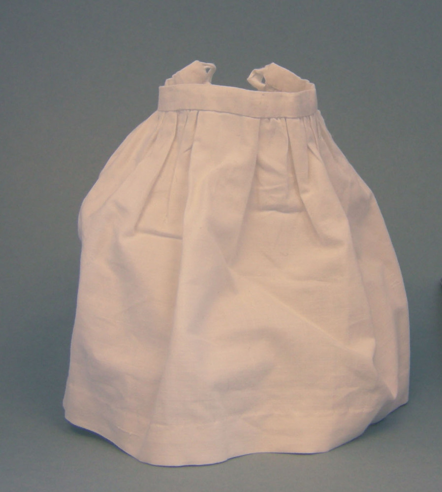 Witte katoenen onderrok, sluiting middenachter met twee linten.- Trefwoorden