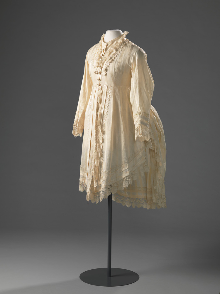 Modieus lijfje voor een namiddagjapon. Het lijfje zou met een bijbehorende wijdvallende rok gedragen zijn, een rok met crinoline of vroege tournure. Deze rok bevindt zich niet in de collectie.