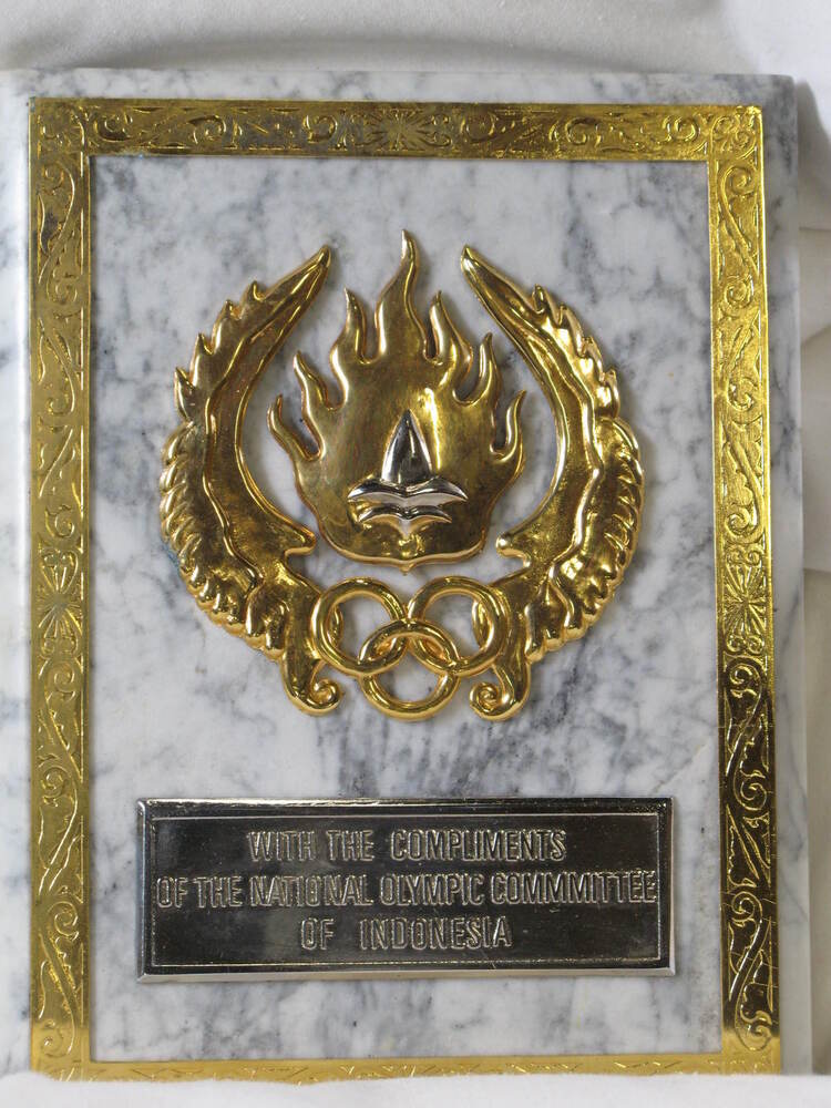 - Plaquette van het Nationaal Olympisch Comité van Indonesië, in kist, 1960 - 1990