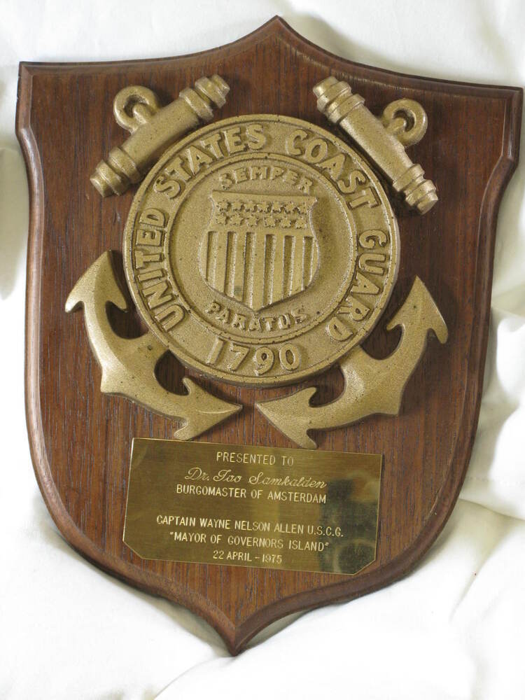 - Wapenbordje van Amerikaanse kustwacht, geschonken aan burgemeester Samkalden, 1975