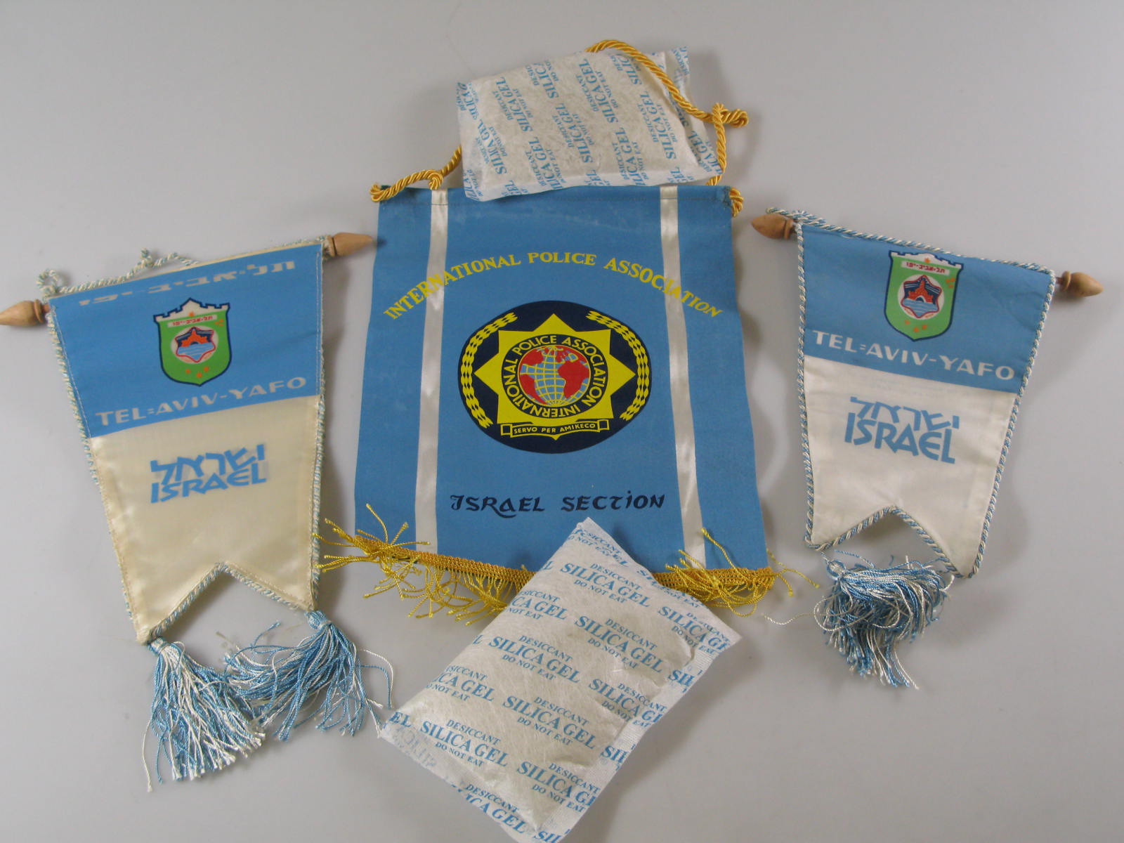 Drie vaantjes in blauw en wit.- Trefwoorden