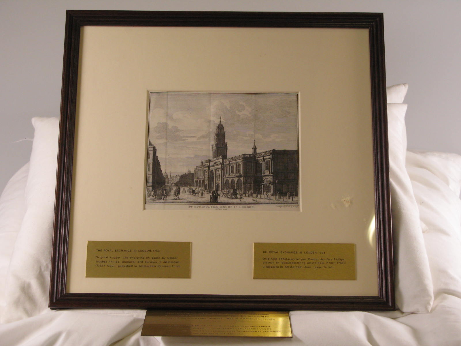 Ingelijste prent met metalen beschrijvingsbordje.- Trefwoorden