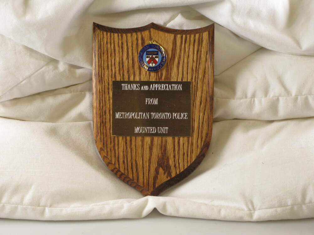 - Thanks and appreciation from Metropolitan Toronto Police, Mounted Unit, 1987