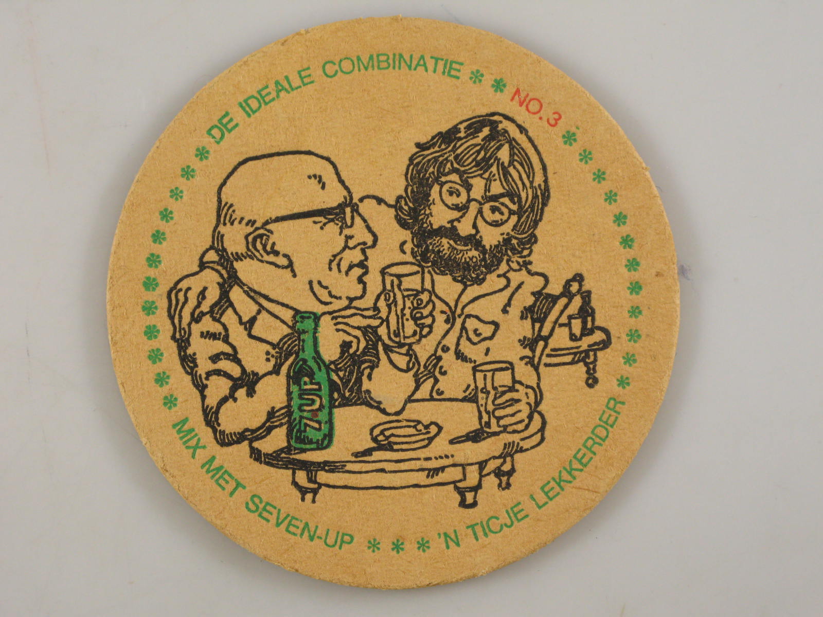 - Biervilt 'De ideale combinatie, no. 3/ Mix met Seven-up' met portret van burgemeester Samkalden en Roel van Duyn, 1900 - 1999