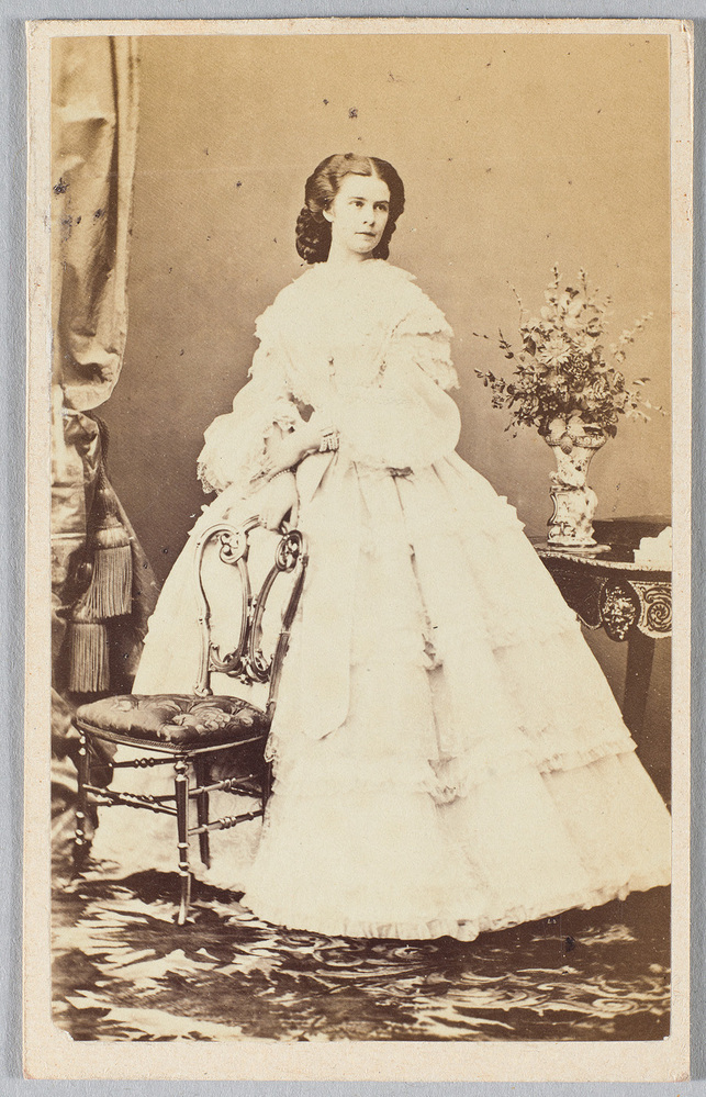 In 1860 maakte Angerer deze foto van de jonge keizerin Elisabeth (1837-1898). Zes jaar eerder trouwde ze met keizer Franz Joseph I. Het leek een droompaar - een beeld dat werd bevestigd door de van hen in omloop gebrachte foto’s - maar de werkelijkheid was anders. Ook ‘Sisi’ zelf was een verwoed verzamelaarster van kleine portretfoto’s.
