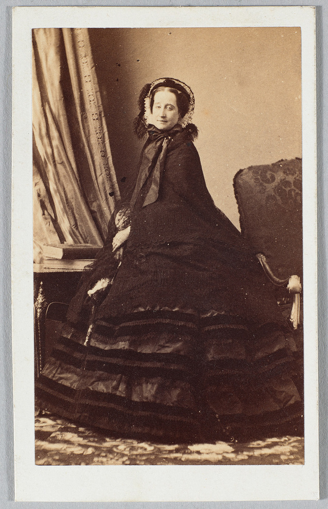 Minzaam kijkt Maria Eugenia Ignacia Augustina de Montijo (1826-1920), de echtgenote van Napoleon III, in de camera van Disdéri. Op andere foto’s uit dezelfde sessie poseert ze met haar echtgenoot en met de kleine kroonprins om haar rol van liefhebbende moeder te benadrukken. Eugénie voerde een grote staat en was de spil van een bruisend hofleven. Zij blies nieuw leven in de interieurkunst van de late achttiende eeuw, waarmee ze een eigen stijl schiep. ( Bert Vreeken)