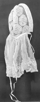 van wit kant, laag afhangend van achteren en van voren met fijn geplooide ruche- Trefwoorden