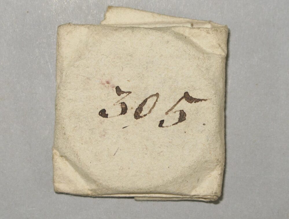 Papieren wikkel. Genummerd in zwart: 305.- Trefwoorden