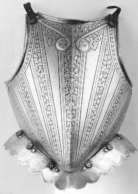 In de jaren zeventig van de zestiende eeuw bestelde de Amsterdamse schutterij vele harnassen in Noord-Italië. Dit exemplaar is waarschijnlijk vervaardigd in Brescia en bestaat uit tien verschillende onderdelen om alle delen van het lichaam te beschermen. De harnassen werden gedragen door de infanterie van de schutterij: militairen te voet. Zij moesten de stadsmuren en –poorten beschermen en orde handhaven in Amsterdam. Tijdens de jaarlijkse kermis in september toonden de schutters zich in volle, glanzende wapenrusting aan de stad. Naarmate de kracht van vuurwapens sterker werd, werd het harnas geleidelijk aan meer een statussymbool dan bescherming. ( Sarah Remmerts de Vries)