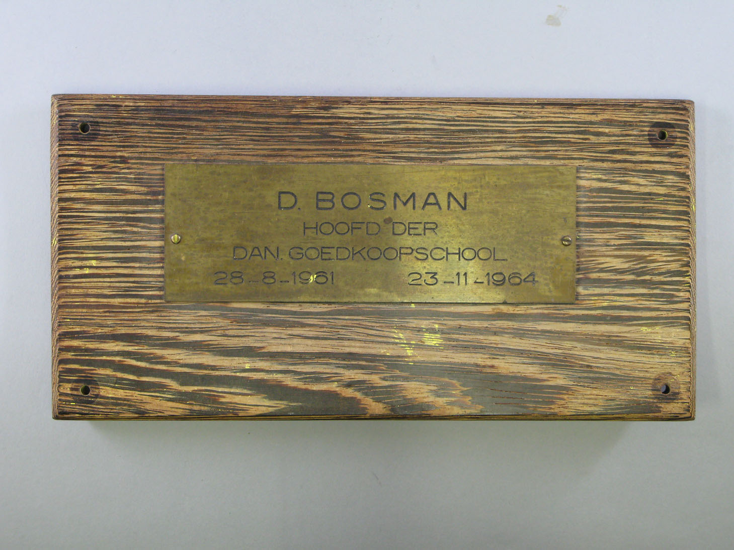 - Bord ter herinnering aan D. Bosman, hoofd van de Daniël Goedkoopschool, 1964