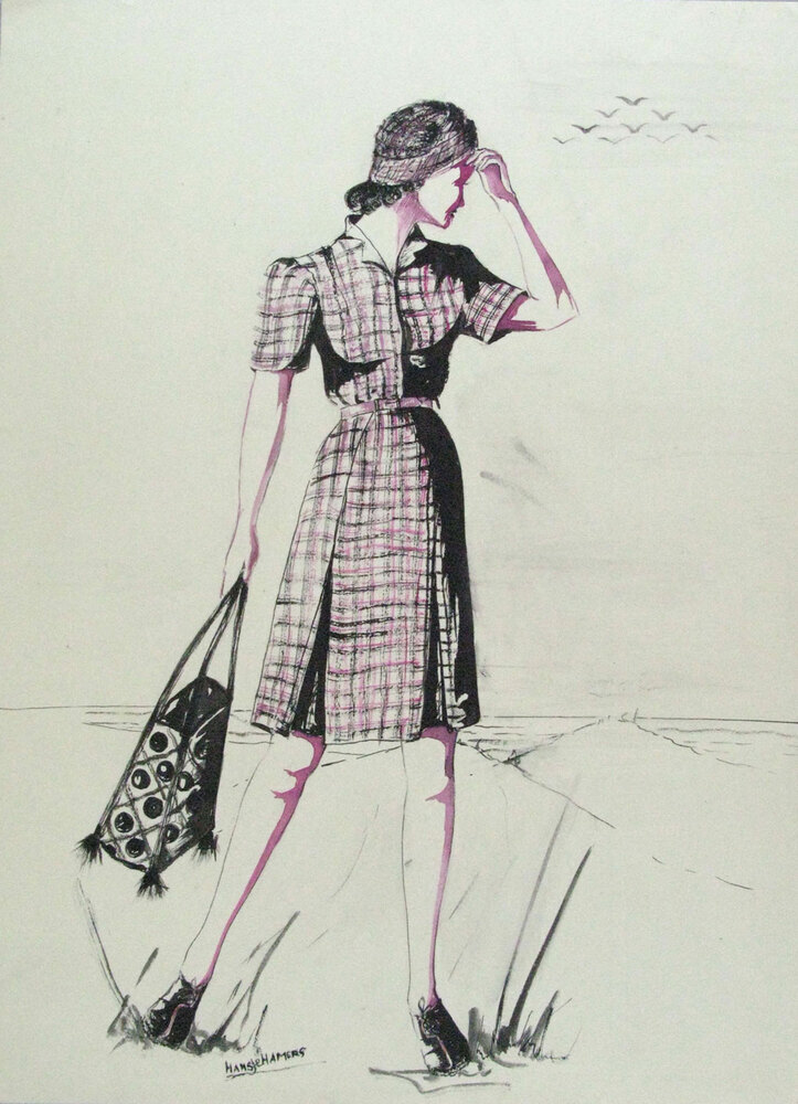 Modetekening gemaakt aan Industrieschool voor vrouwelijke Jeugd De Schans- Trefwoorden