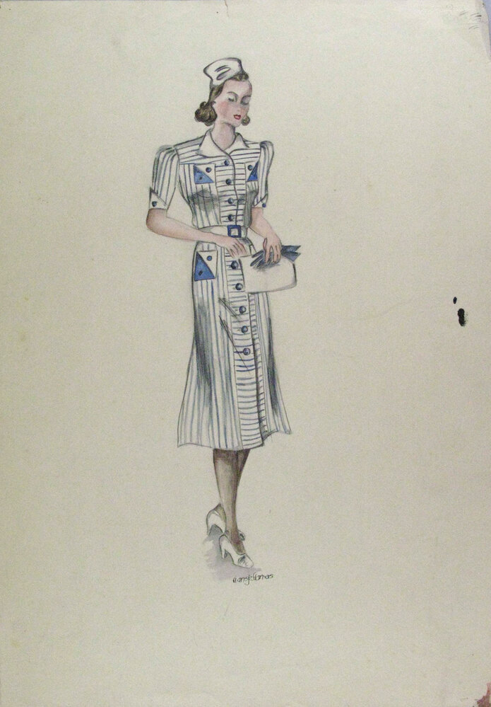 Modetekening gemaakt aan Industrieschool voor vrouwelijke Jeugd De Schans- Trefwoorden