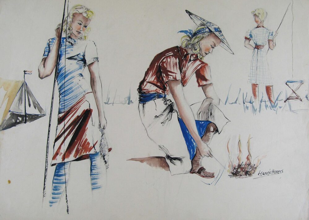 Modetekening gemaakt aan Industrieschool voor vrouwelijke Jeugd De Schans- Trefwoorden