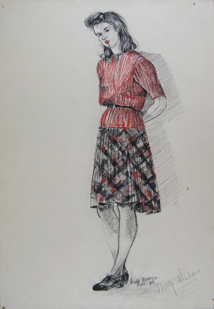 Modetekening gemaakt aan Industrieschool voor vrouwelijke Jeugd De Schans- Trefwoorden
