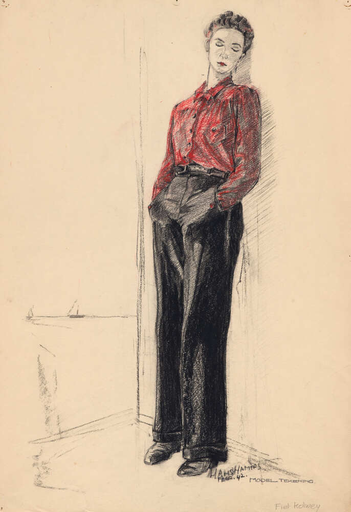 Modetekening gemaakt aan Industrieschool voor vrouwelijke Jeugd De Schans- Trefwoorden
