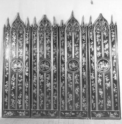 Vier panelen van een vijfslags kamerscherm, aan bovenzijde gotische bogen- Trefwoorden