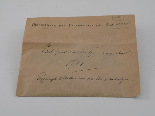 - opschrift voorop op wikkel: Lint groote medailje Doggersbank 1781. Bijgevoegd 2 linten voor de kleine medailjes.