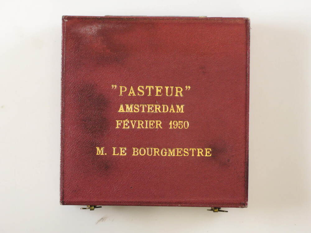 - Doosje voor penning van het passagiersschip 'Pasteur' geschonken aan burgemeester d'Ailly, 1950