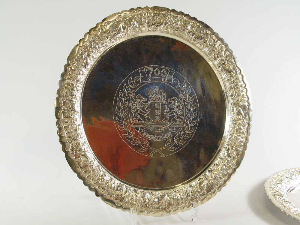 Inscriptie voorzijde: wapen van Amsterdam (met leeuwen) binnen krans; boven de krans staat het getal 700. Op achterzijde tekst: TANDA MATA GUBERNUR KEPALA DAERAH KHUSUS IBUKOTA JAKARTA/ WALI KOTA AMSTERDAM AUGUSTUS 1975/ LETNAN JENDERAL TNI (KHO-AL)/ HAJI ALI SADIKIN/ KEPADA/ DR. IVO SAMKALDEN/.