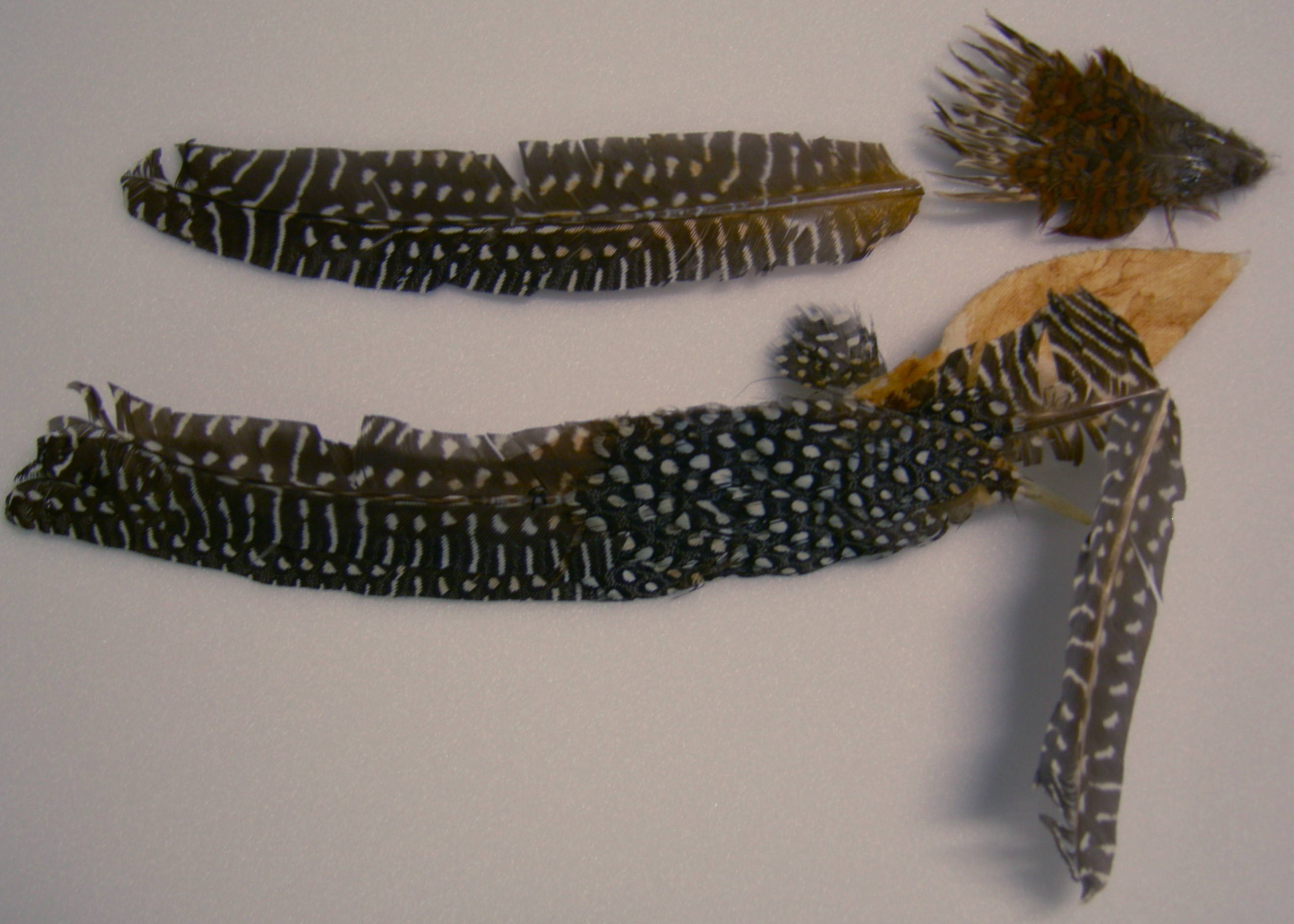 gekleurde kokarde van reiger en fazant met een pluim van in auberginekleur geverfde reigerveren