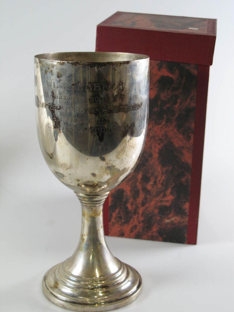 - opschrift: Wisselbeker aangeboden door het Gemeentebestuur van Amsterdam Amstelprijs Springconcours
