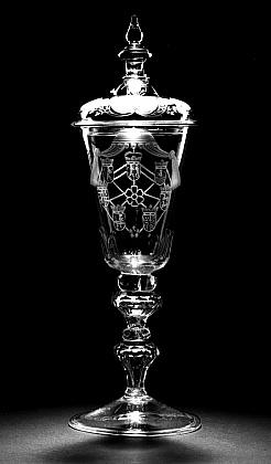 Op de kelk een rozet omgeven door de wapens van de Republiek der Zeven Verenigde Provinci‰n onder een baldakijn. ( Annemarie den Dekker) Catalogus glas AHM 1998 Voormalige collectie L. Stokbroo van Hoogwoud en Aartswoud te Hoorn. ( Bert Vreeken) Amsterdam Museum