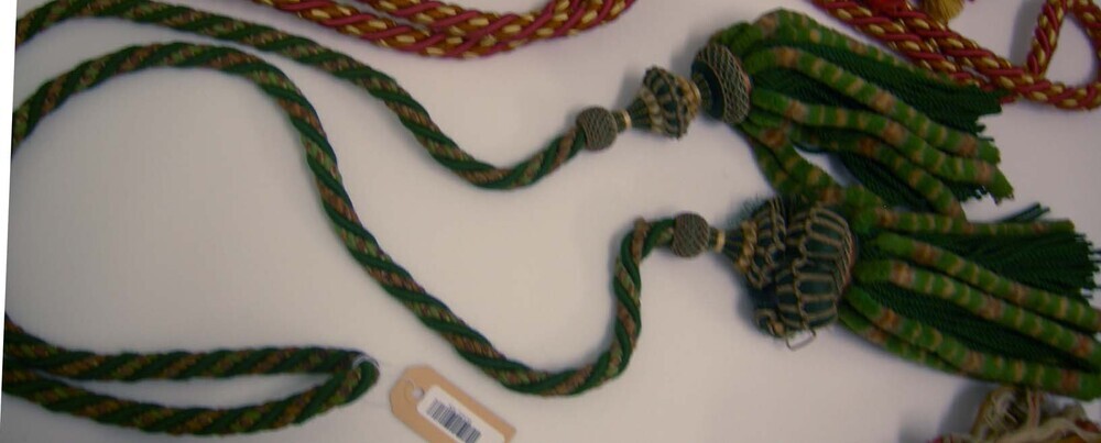 Gordijnkoord met twee kwasten, donkergroen, lichtgroen, bruin en ecru- Trefwoorden