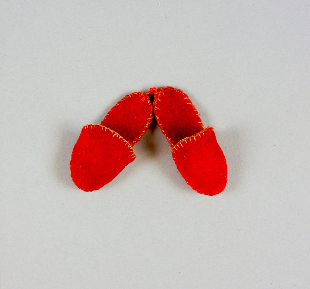 Paar rode vilten schoenen, sloffen- Trefwoorden