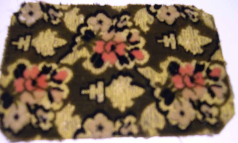 Staal met goudkleurige ondergrond met fluwelen bloemen in roze en zwart- Trefwoorden