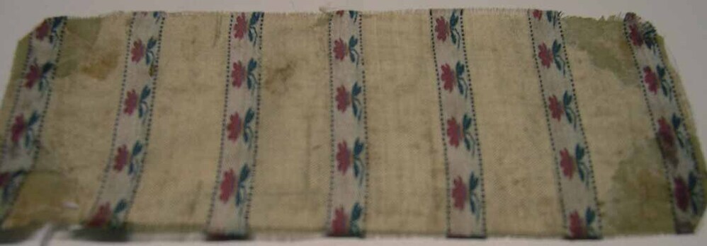 Cremekleurige staal met banen met daarin rode bloemen- Trefwoorden