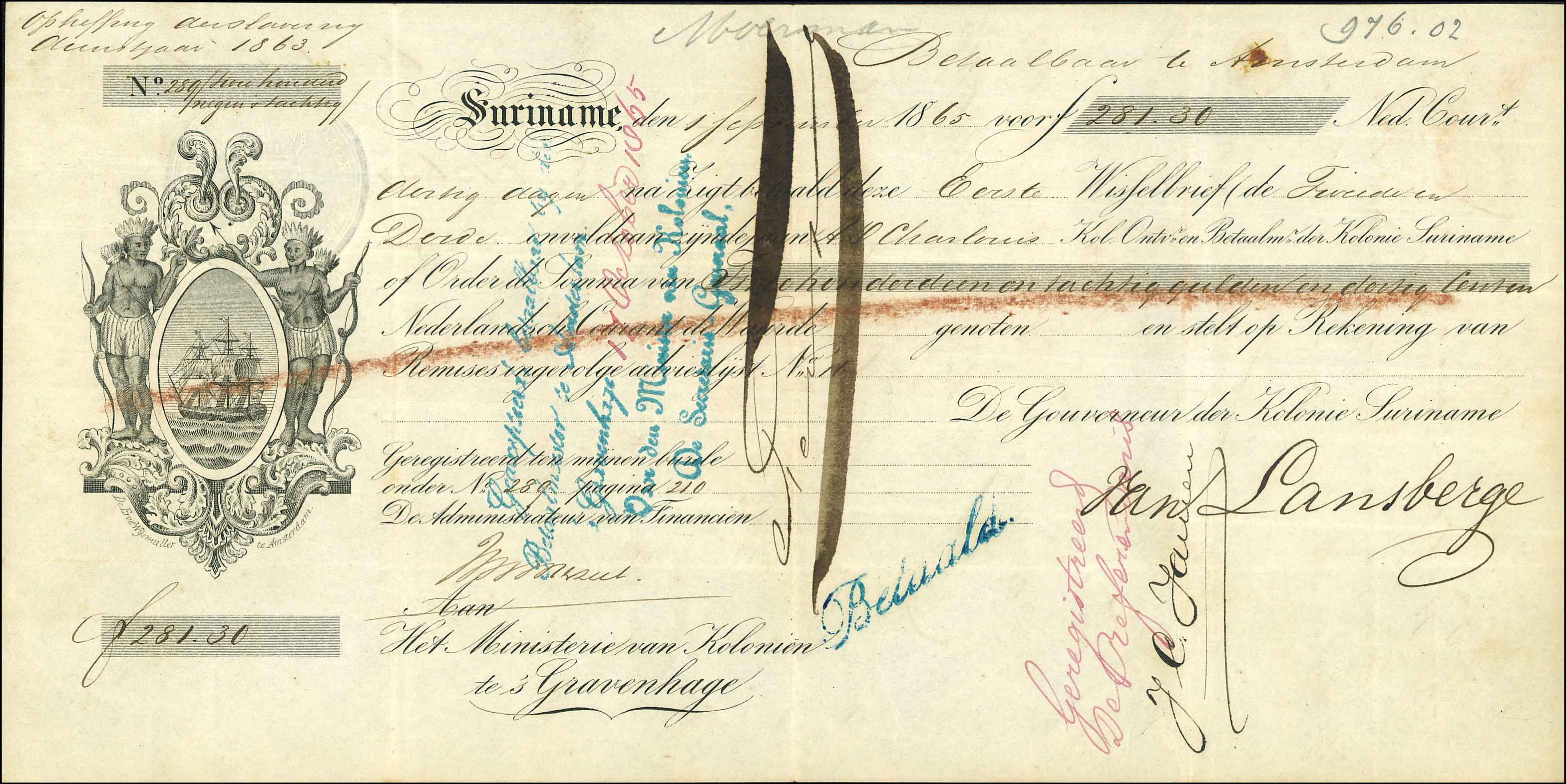 - Wisselbrief afschaffing slavernij Suriname, No. 289, 1863 - 1865